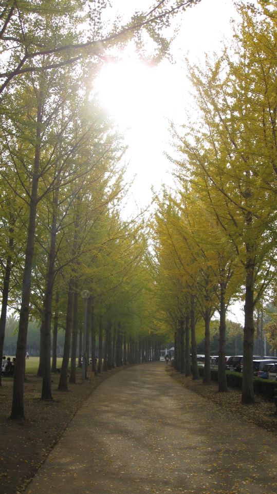 公孫樹の街路樹が色づき紅葉が始まっています。