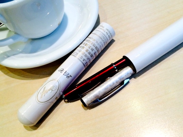 いつもお世話になっている愛用の黒と赤のボールペンに、