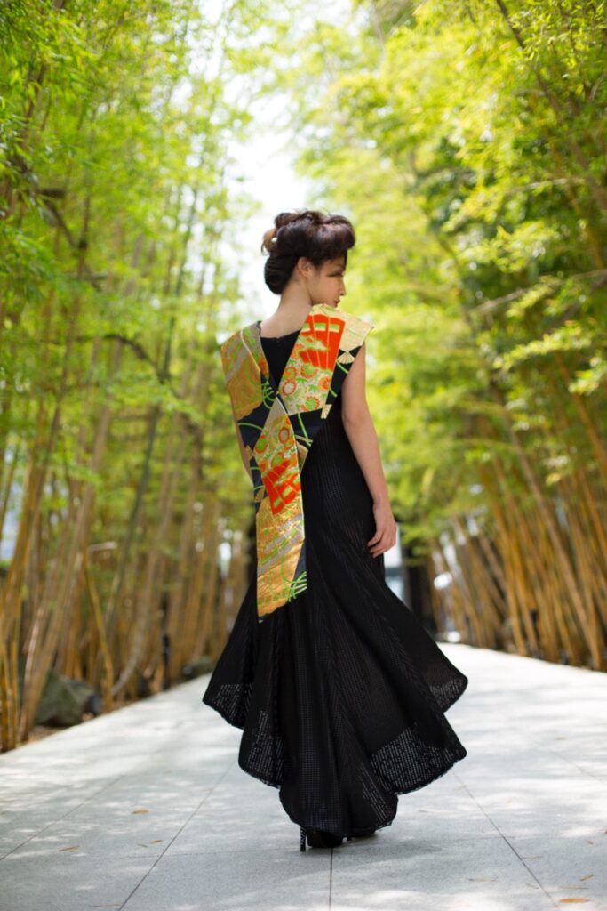 日本の着物と出会い、その素晴らしい伝統と素材を新しい価値に生まれ変わら服を仕立てる。