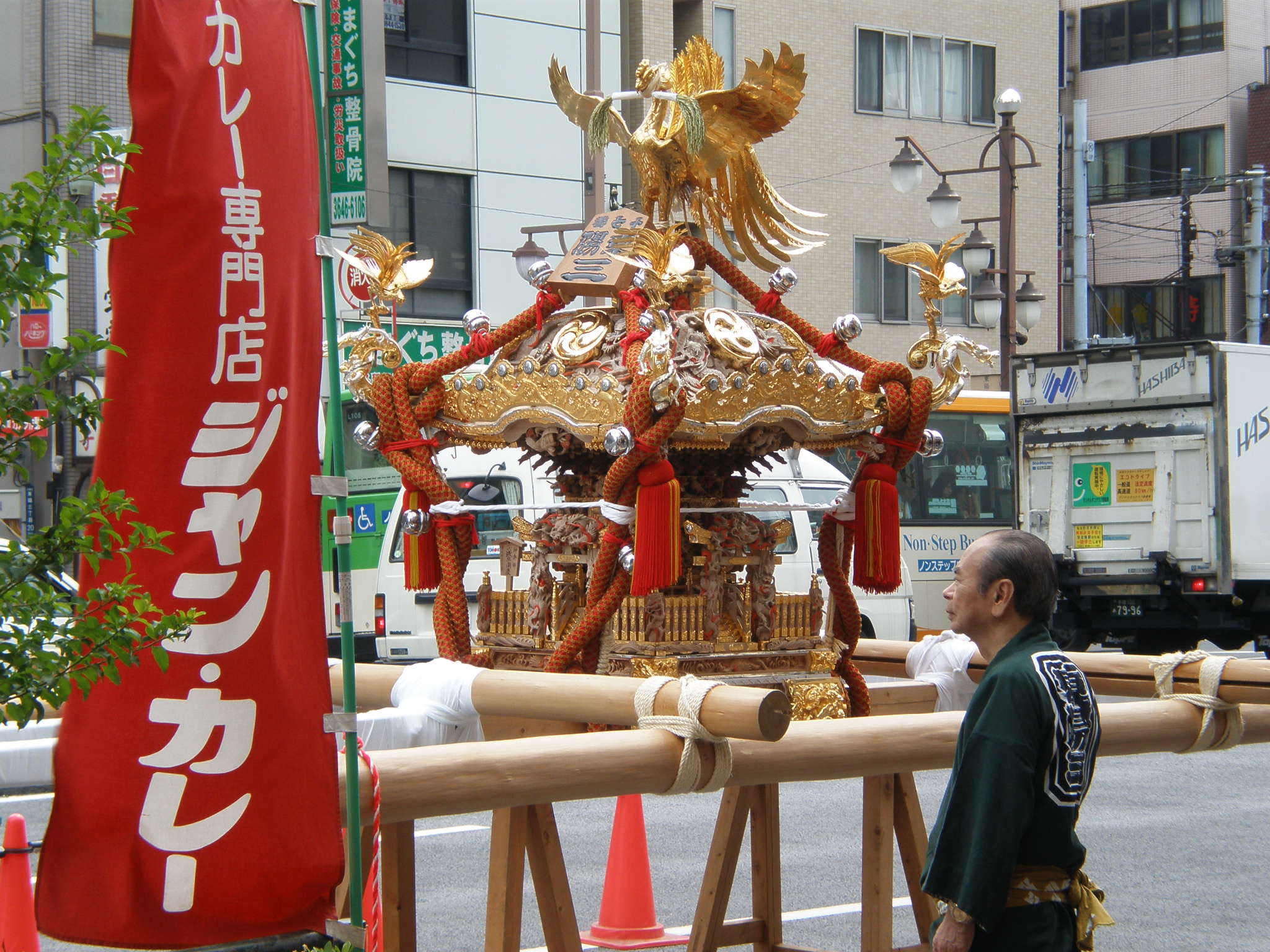門前仲町の近辺は、街角にきらびやかなお神輿が並び祭り気分が盛り上がります。