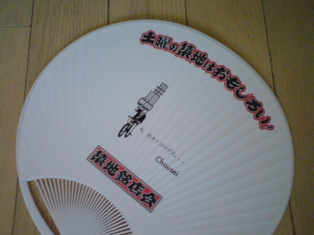 築地の場外のお店では、夏にはオリジナルの団扇を配ります。